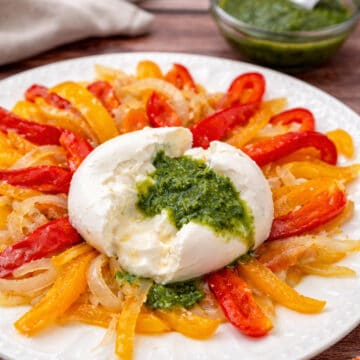 - Burrata with Sautéed Peppers and Nut-Free Basil Pesto